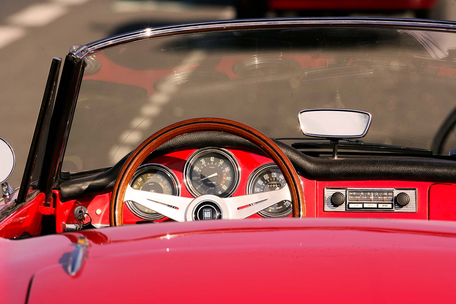 Independent front suspension with double wishbones and a live rear axle offer precise, communicative dynamics. It’s not a flat-cornering machine, but it inspires confidence with light, direct steering and predictable balance. Drum brakes all around (with finned fronts) were advanced for the era and remain effective for spirited touring. The four-speed manual shift is mechanical and satisfying, while the open cabin connects you fully to the road and surroundings.